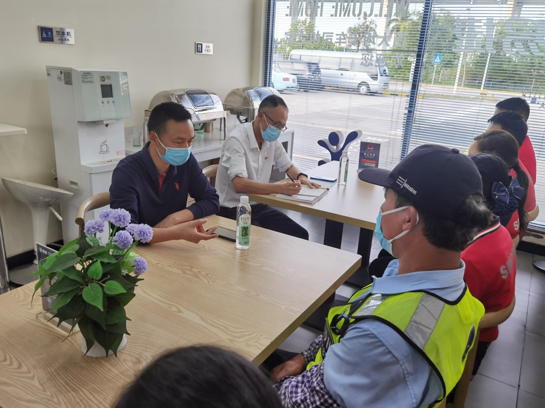 ▲虎门经管部为一线员工开展座谈,并为隔离员工送去关爱
