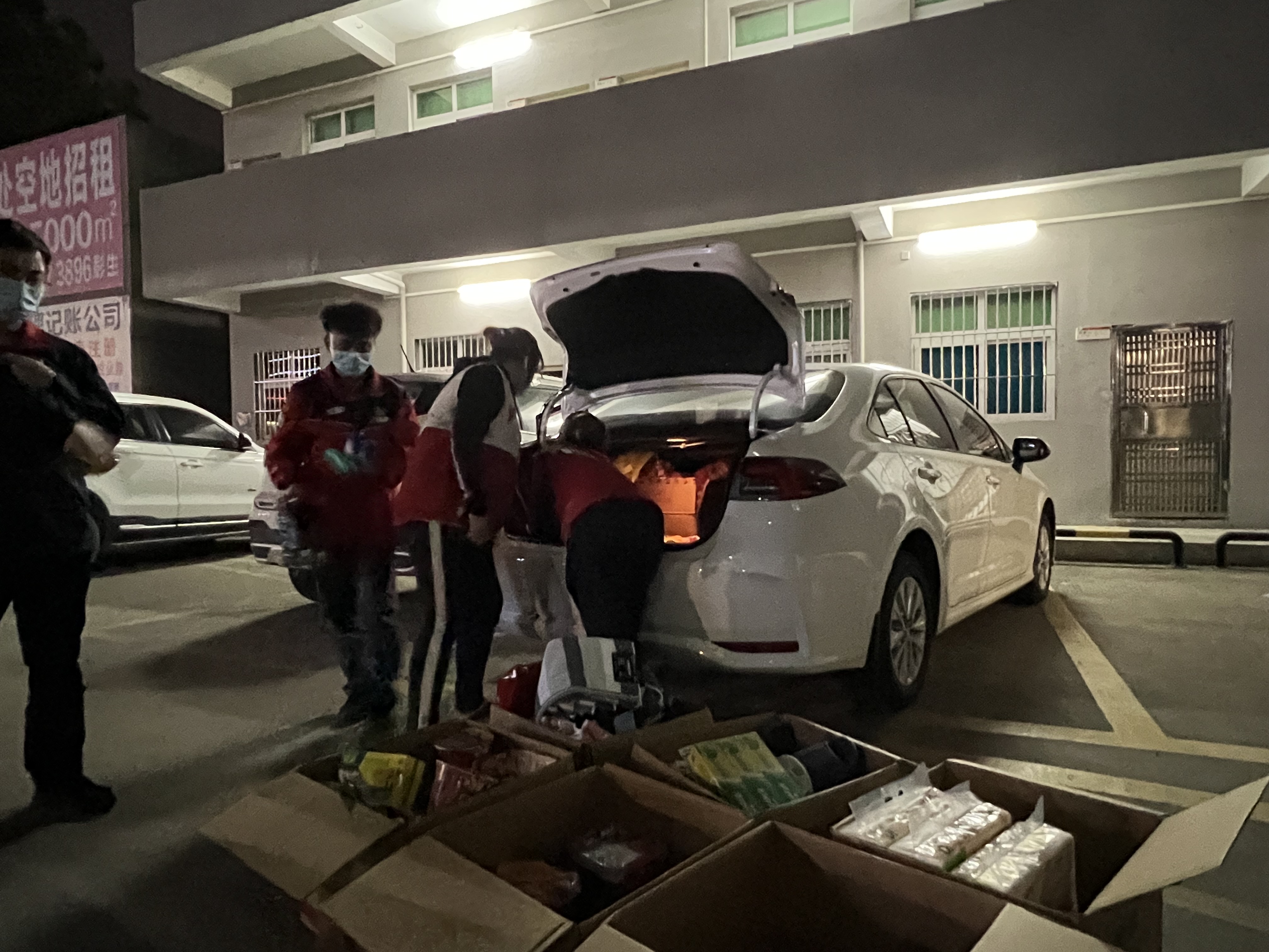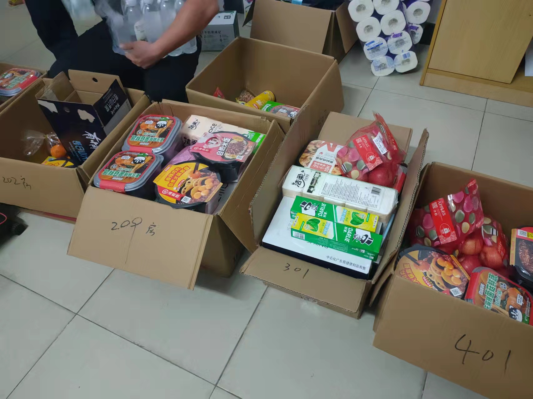 ▲公司多方调配人手,与周边超市、供应商联系协调,为受疫情影响严重的员工发放生活物资