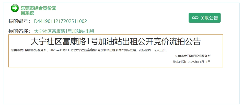 虎门镇一加油站出租项目流拍