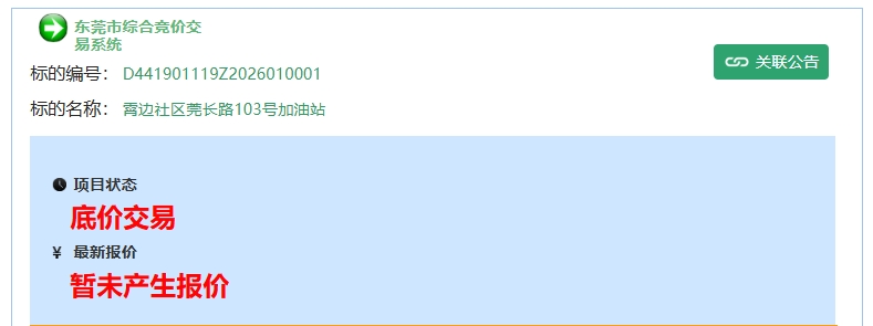 位于东莞市长安镇霄边社区莞长路103号加油站暂无报价,项目进入底价交易状态。(点击此处可浏览详情)